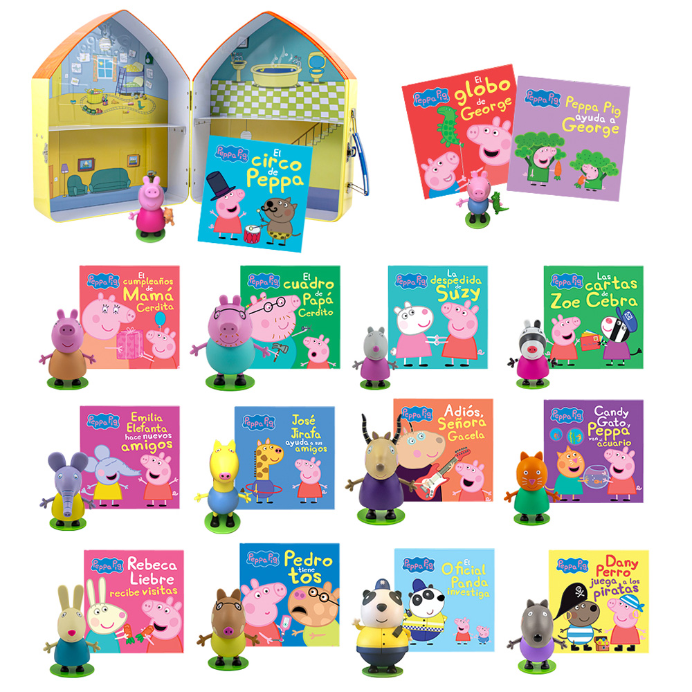Pasa horas de diversión con las historias de “Peppa Pig” y sus amigos con esta magnífica colección. Son 15 libros, 14 figuras y una caja coleccionadora metálica.
