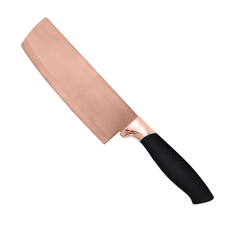 Cuchillos de acero inoxidable con un recubrimiento color oro rosa, con acabados de lujo, máxima durabilidad y alta resistencia a la corrosión. Cuentan con un mango “soft touch” que permite una mejor manipulación del cuchillo para realizar cortes perfectos.