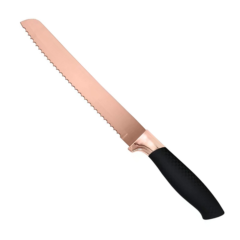 Cuchillos de acero inoxidable con un recubrimiento color oro rosa, con acabados de lujo, máxima durabilidad y alta resistencia a la corrosión. Cuentan con un mango “soft touch” que permite una mejor manipulación del cuchillo para realizar cortes perfectos. Porque el secreto de un buen chef, es un cuchillo extraordinario.
